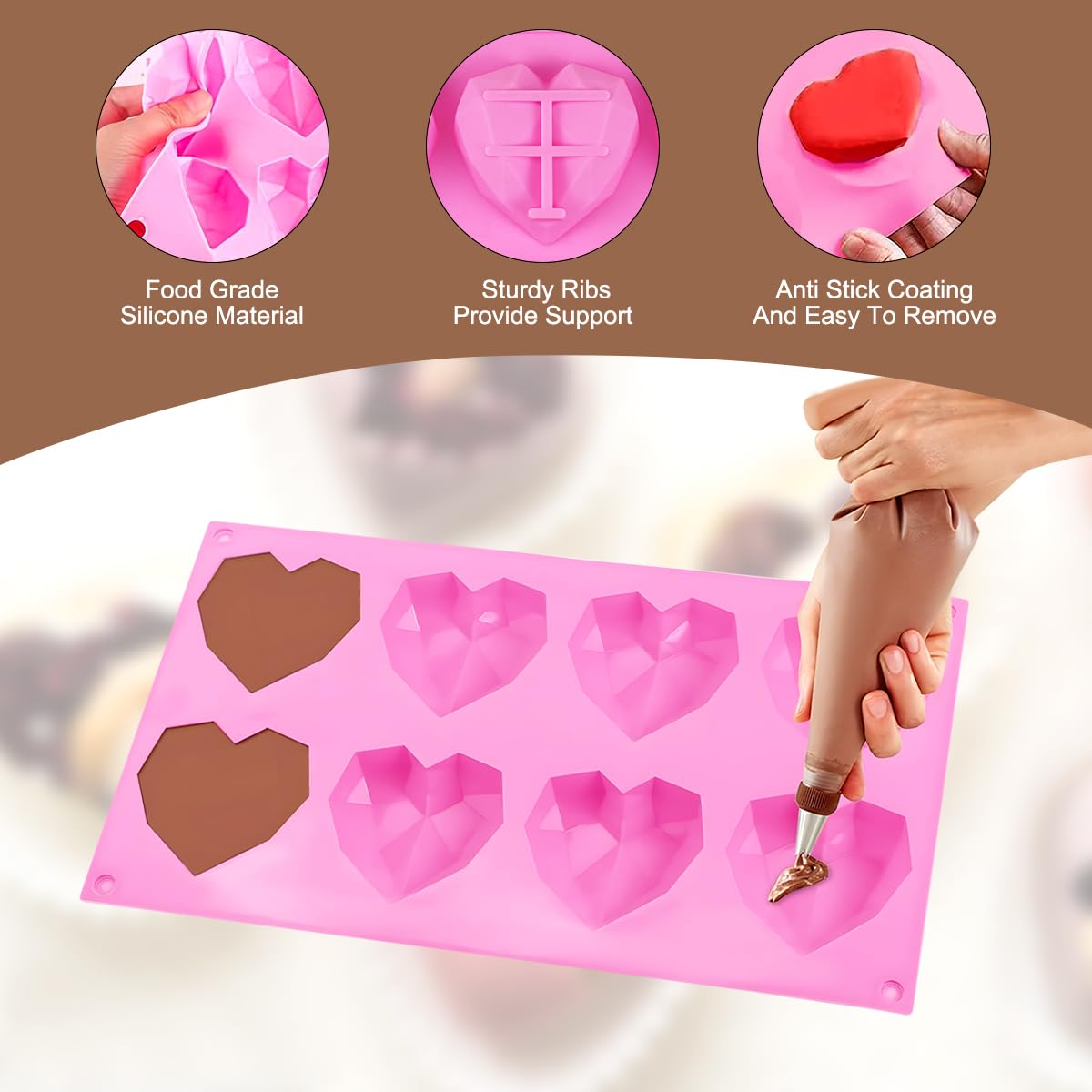 Herzförmige Backformen Aus Silikon - 2 Stück Diamant-Herz Formen Für Kuchen & Desserts