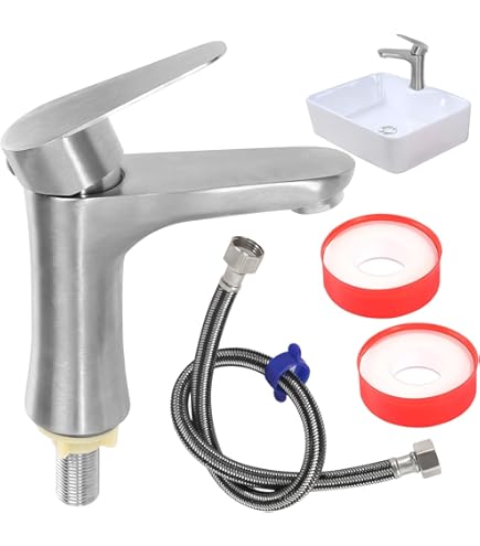 Single Kaltwasserhahn Für Bad - Waschtischarmatur Aus Zinklegierung Mit 60cm Schlauch