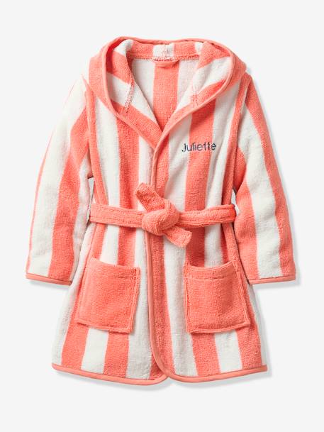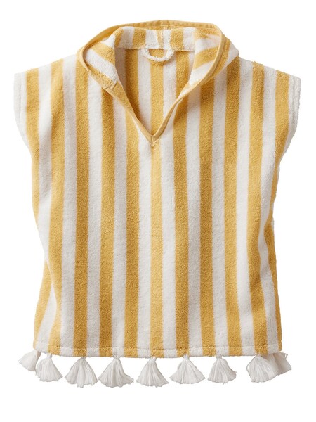 Vertbaudet Kinder Bademantel OZEAN - Gelb Gestreift Größe 140 | Frottee Mit Kapuze & Taschen
