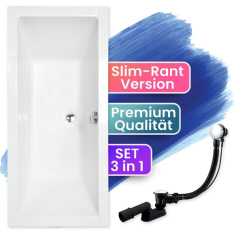 BADLAND Acryl Badewanne QUADRO 180x80 Cm - Komplettset Mit Chrom Ablauf
