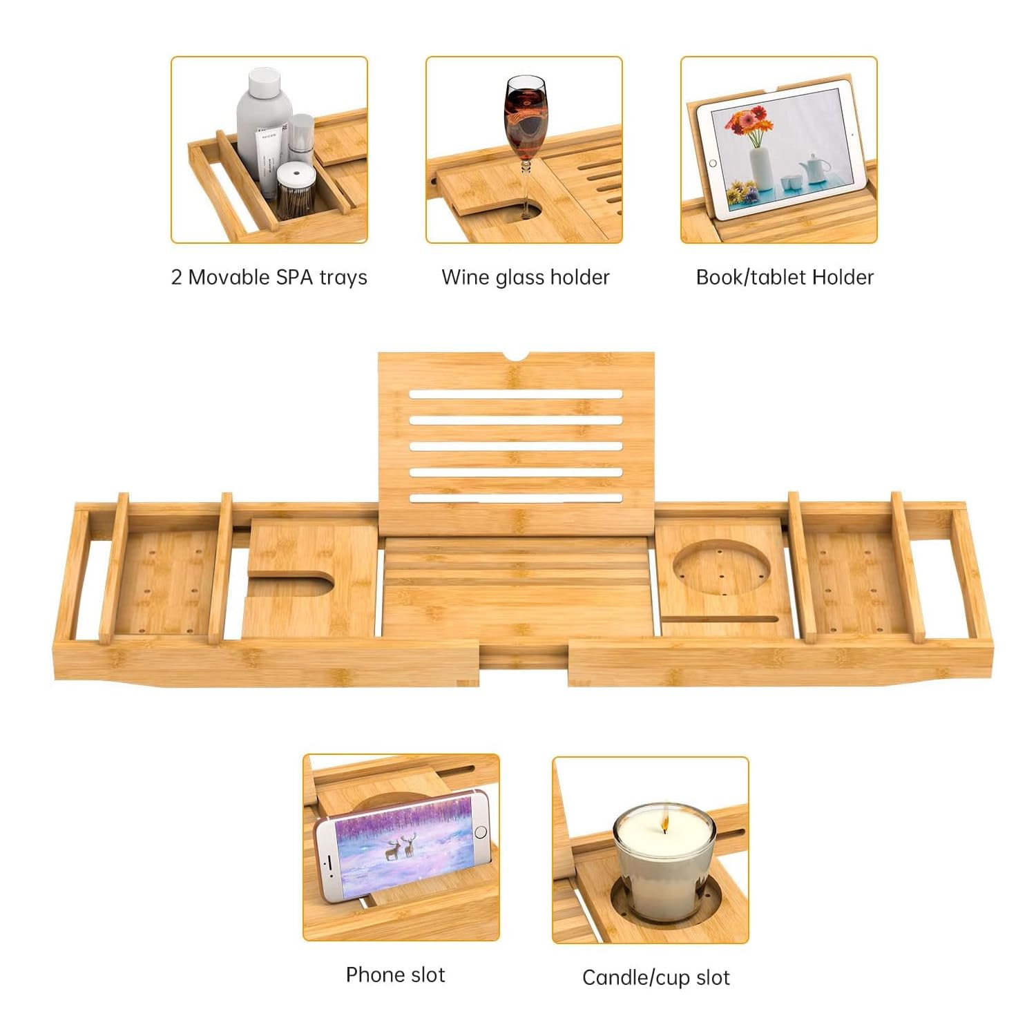 Ausla Badewannenablage Weiß - Ausziehbar Mit Weinhalter & Tablet-Ablage, 70cm