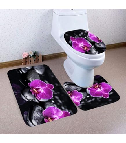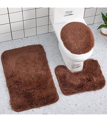 A.Monamour 3-teilige Badezimmer Garnitur - Badematte, Vorleger & WC Abdeckung