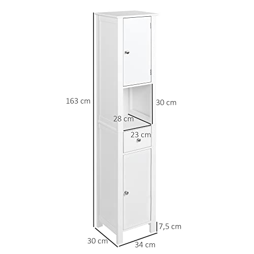 Badezimmerschrank Schmal 28x25x90cm - PVC Badschrank Mit 4 Ebenen Weiß