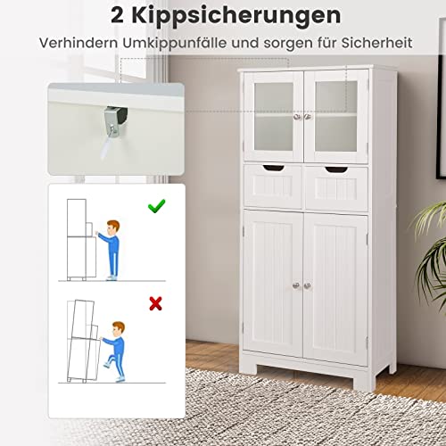 Perfekt für kleine Bäder! Dieser schmale Badezimmerschrank in Weiß (60x20x80cm) passt genau neben die Toilette oder in jede Ecke. Mit 2 praktischen Schiebetüren, die auch bei beengten Verhältnissen leicht zu öffnen sind. Innen findest du 2 höhenverstellbare Regale, 2 Toilettenpapierspender und ein Fach für die Bürste. Die Oberseite mit erhöhtem Rand verhindert das Herunterfallen von Gegenständen. Aus feuchtigkeitsresistentem MDF, inklusive Kippschutz für mehr Sicherheit. Auch ideal für Wohnzimmer oder Küche! Einfach aufbauen und sofort mehr Ordnung im Bad genießen. Maximale Traglast: 30kg.