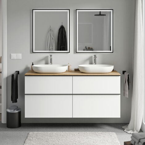Bernstein Badmöbel-Set Ava 140cm - Waschbeckenunterschrank Weiß Mit Keramikbecken