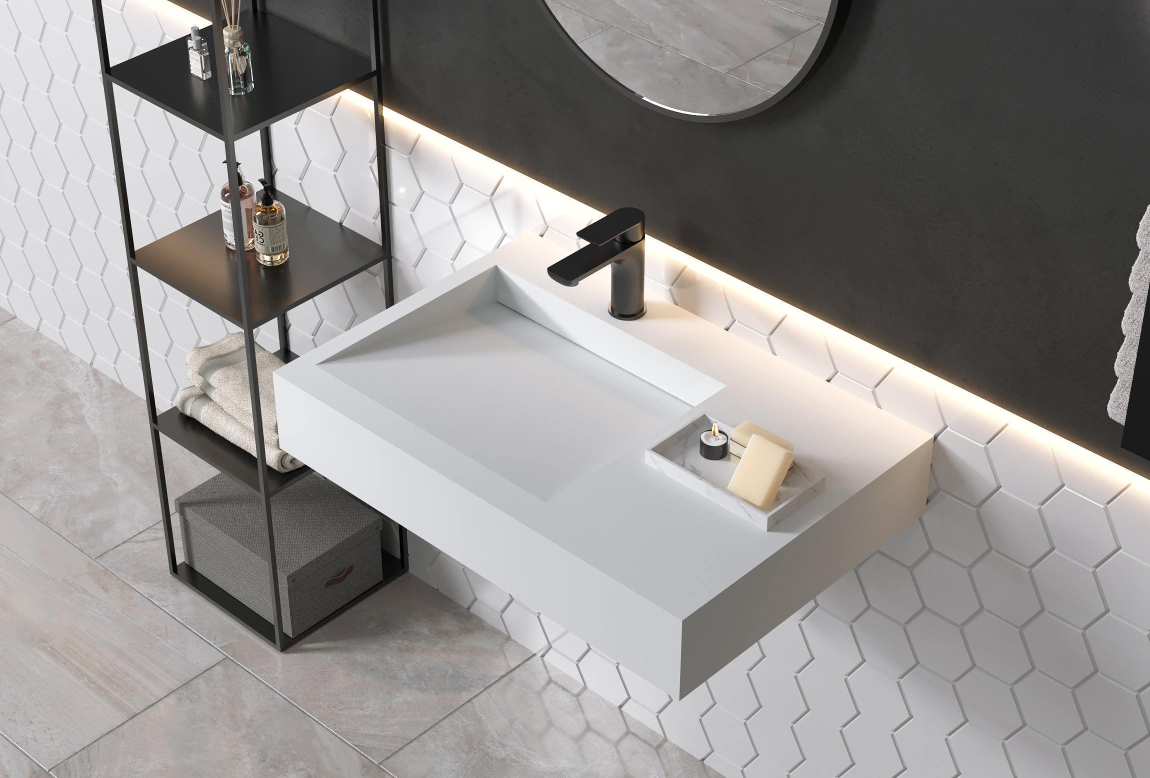Bernstein Badshop Wandwaschbecken Mineralguss - Eckig 74x50x13cm Weiß