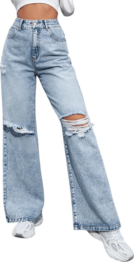 GORGLITTER Damen Baggy Jeans - Hohe Taille, Weites Bein, Denim Freizeithose