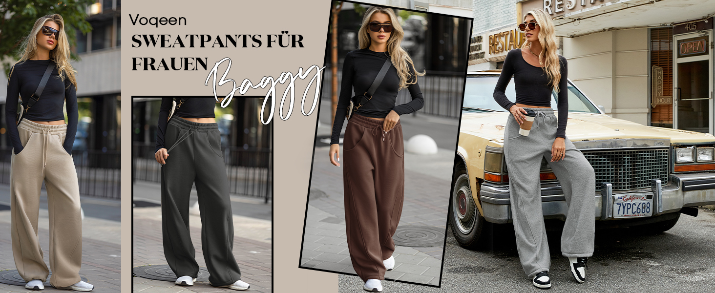Damen Jogginghose Baggy Mit Weitem Bein - Y2K Style Mit Hoher Taille Und Taschen
