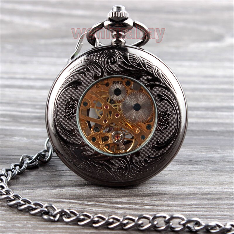 Gotham Herren Taschenuhr Edelstahl - Mechanisch Mit Bahn-Stil Design | 49mm, Wasserdicht 30m | Mit Panzerkette