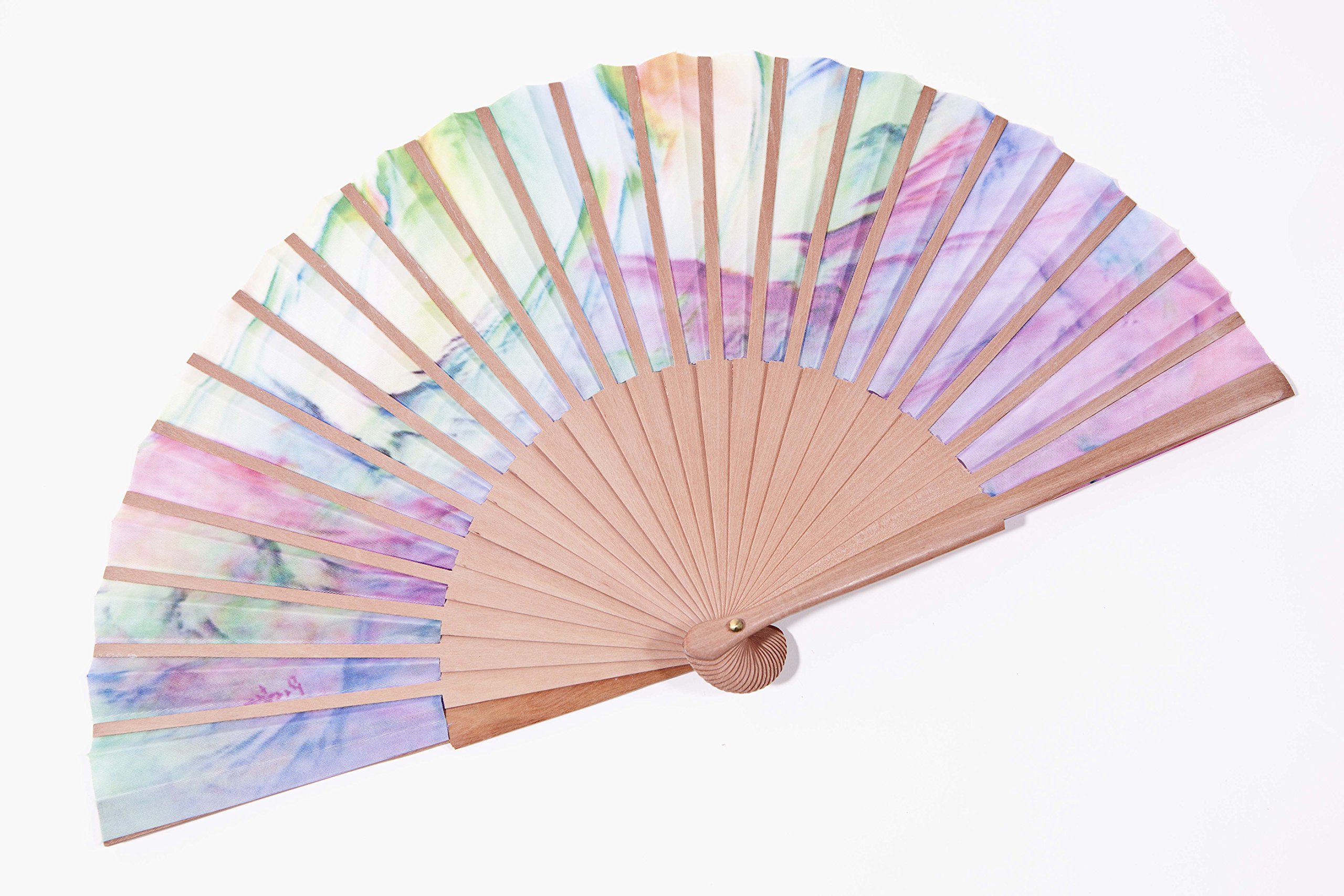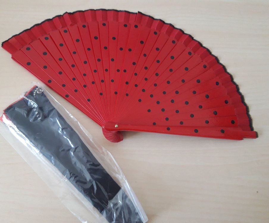 Super für heiße Sommertage, Konzerte oder einfach als stylisches Accessoire. Leicht und handlich - passt in jede Handtasche. Der Stoff macht etwa zwei Drittel des Fächers aus und das Holz gibt die nötige Stabilität.