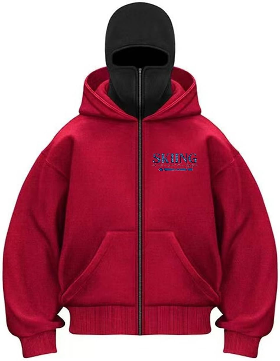 Boah, dieser Hoodie ist der Hammer! Sieht aus wie aus einem Action-Film - mit integrierter Gesichtsmaske und vollem Reißverschluss. Super praktisch: Die Maske kannst du hochziehen wenn's kalt wird oder einfach als stylisches Detail tragen. Aus weichem, atmungsaktivem Material - mega bequem für den ganzen Tag. Oversized Schnitt, also schön locker und lässig. Perfekt für Stadt, Sport, Wandern oder einfach nur chillen. Mit praktischen Taschen für dein Zeug. Waschmaschinenfest und in verschiedenen Farben erhältlich. Ob für dich oder als Geschenk - damit machst du alles richtig! Y2K Style vom Feinsten!