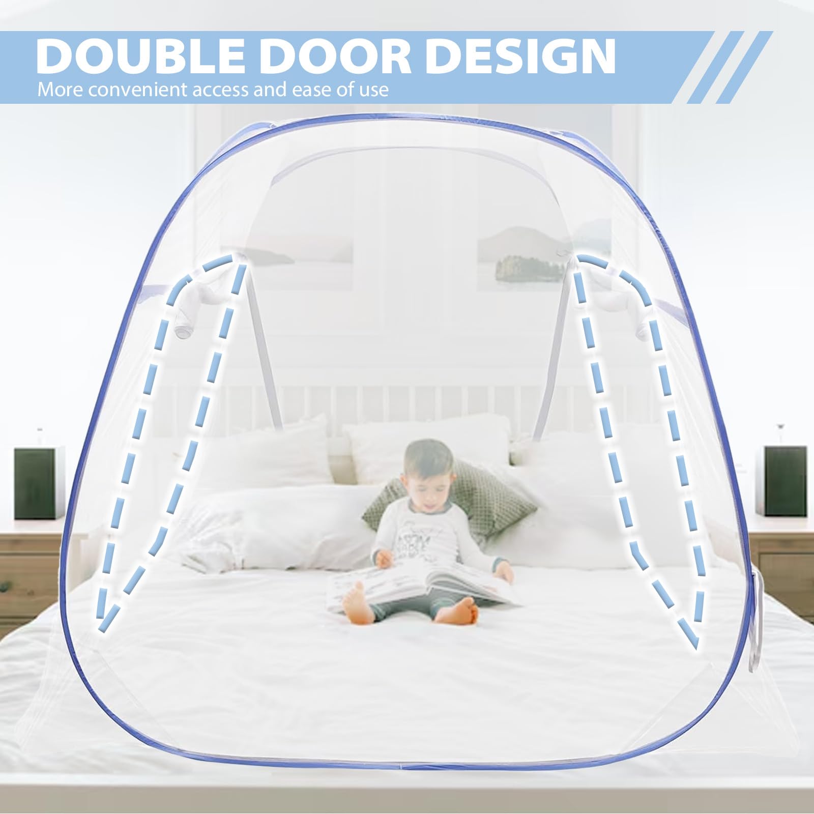 Das feine Netz hält selbst kleine Insekten draußen, lässt aber trotzdem Luft durch. Doppelte Reißverschlüsse auf beiden Seiten machen das Ein- und Aussteigen mega einfach.