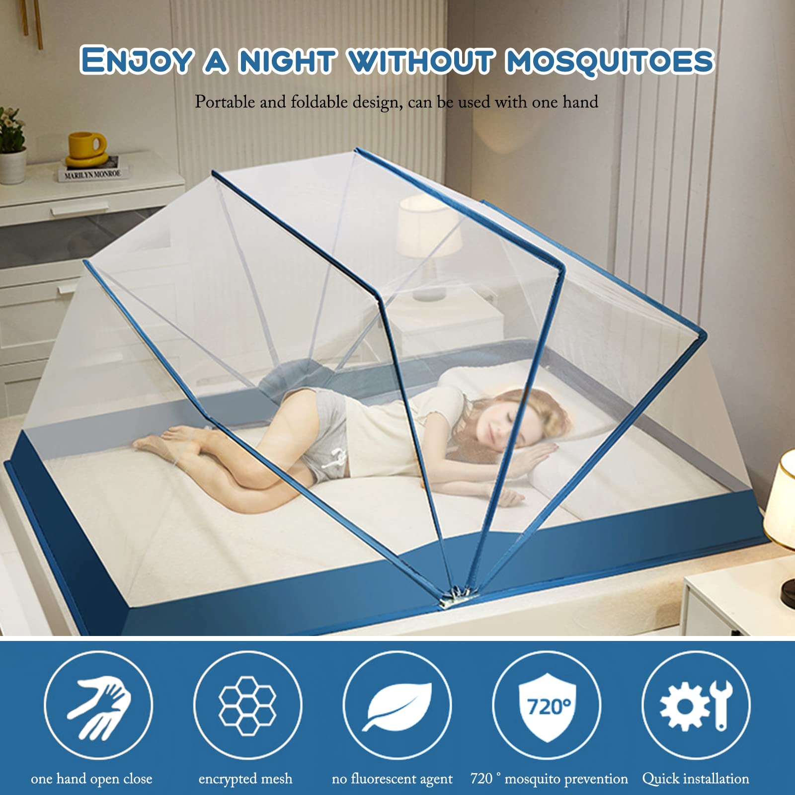 Endlich Ruhe vor Mücken! Dieses Balakaka Moskitonetz schützt dich und deinen Partner perfekt. Mit 160x190x80cm passt es auf die meisten Doppelbetten und ist super einfach aufzubauen - einfach ausklappen und fertig!