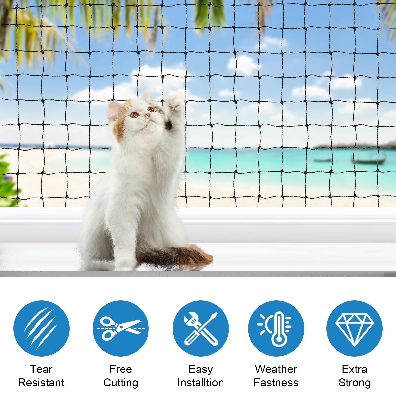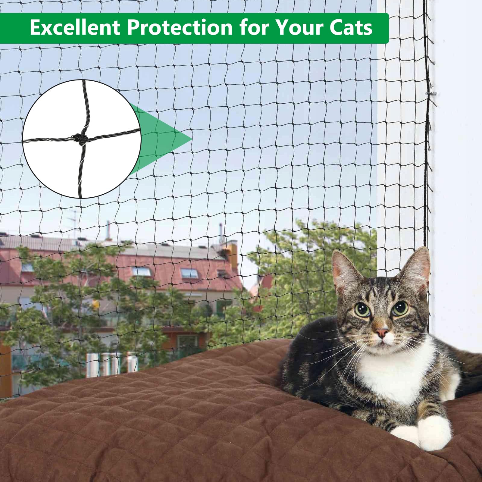 JOAASU Katzennetz Balkon 10x3m - Verstärktes Schutznetz Mit Kabelbindern Und Haken