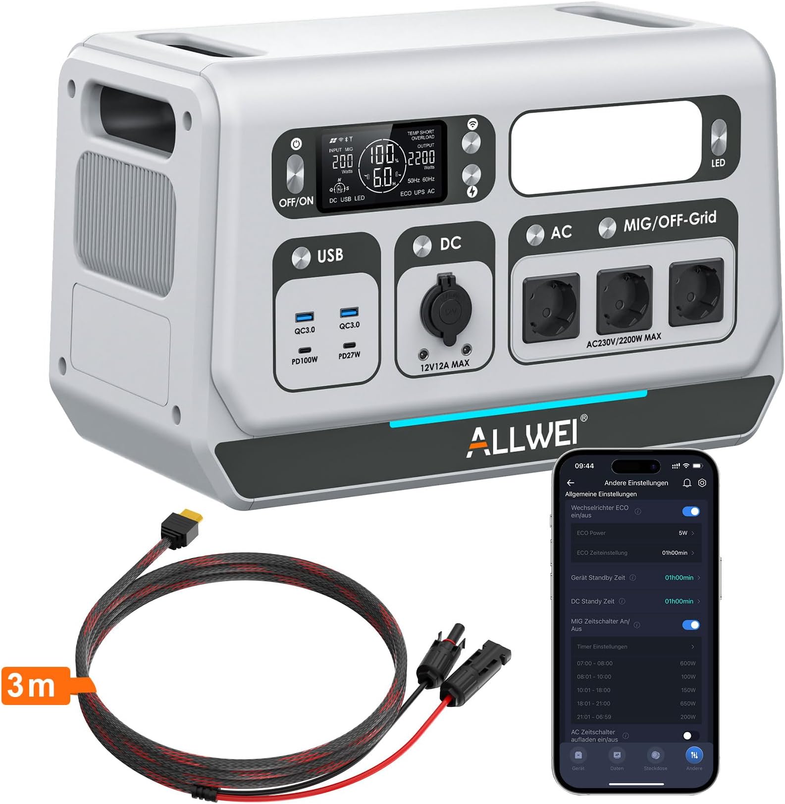 Einfach Stromkosten sparen! Dieses Balkonkraftwerk macht dich unabhängiger. Mit 2048Wh Kapazität (erweiterbar auf massive 10240Wh!) produzierst du deinen eigenen Ökostrom. LiFePO4-Akku mit 3500 Ladezyklen - hält bis zu 15 Jahre! Einfach per App steuern, zeitgesteuert laden und den Solarertrag maximieren. Mit 1600W Solar-Eingang und Mikroinverter für maximale Effizienz. Plug&Play Installation - kein Elektriker nötig! VDE4105 zertifiziert und CE-gekennzeichnet. Wechsel zwischen Netzbetrieb und Inselbetrieb. Spare bis zu 700€ Stromkosten pro Jahr! Deine grüne Energie-Lösung für Zuhause.