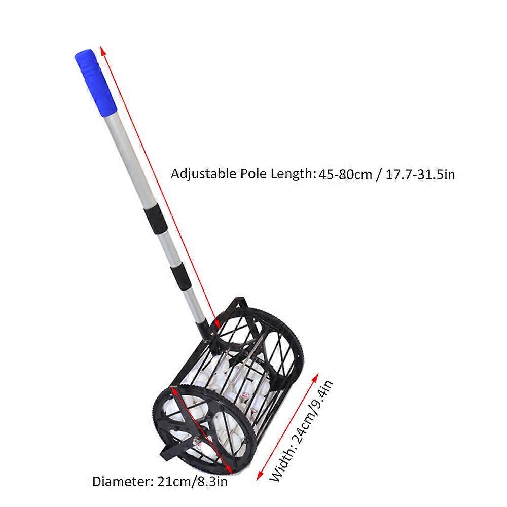 Nie wieder Bücken beim Tennis! Dieser praktische Ball-Sammler nimmt dir die lästige Arbeit ab. Mit Kapazität für satte 80 Bälle sammelst du im Nu das ganze Feld ein. Das geniale Design: Der Roller ist 36x31 cm groß und die Höhe lässt sich von 88 bis 103 cm verstellen - perfekt für jede Körpergröße! Noch cooler: Das Teil kann mehr als nur Bälle einsammeln! Einfach den Bolzen in das kleine Loch stecken und schon hast du ein Trainingsgerät für deine Aufschläge. Die Bälle fallen seitlich raus - super praktisch. Leicht und klappbar, nimmst du ihn einfach in der Tasche mit zum Platz. Aus robustem Material gebaut, hält er jeden Einsatz aus. Perfekt für Verein, Training oder einfach für dich allein. Spart Rücken und Zeit - mehr Tennis-Spaß!