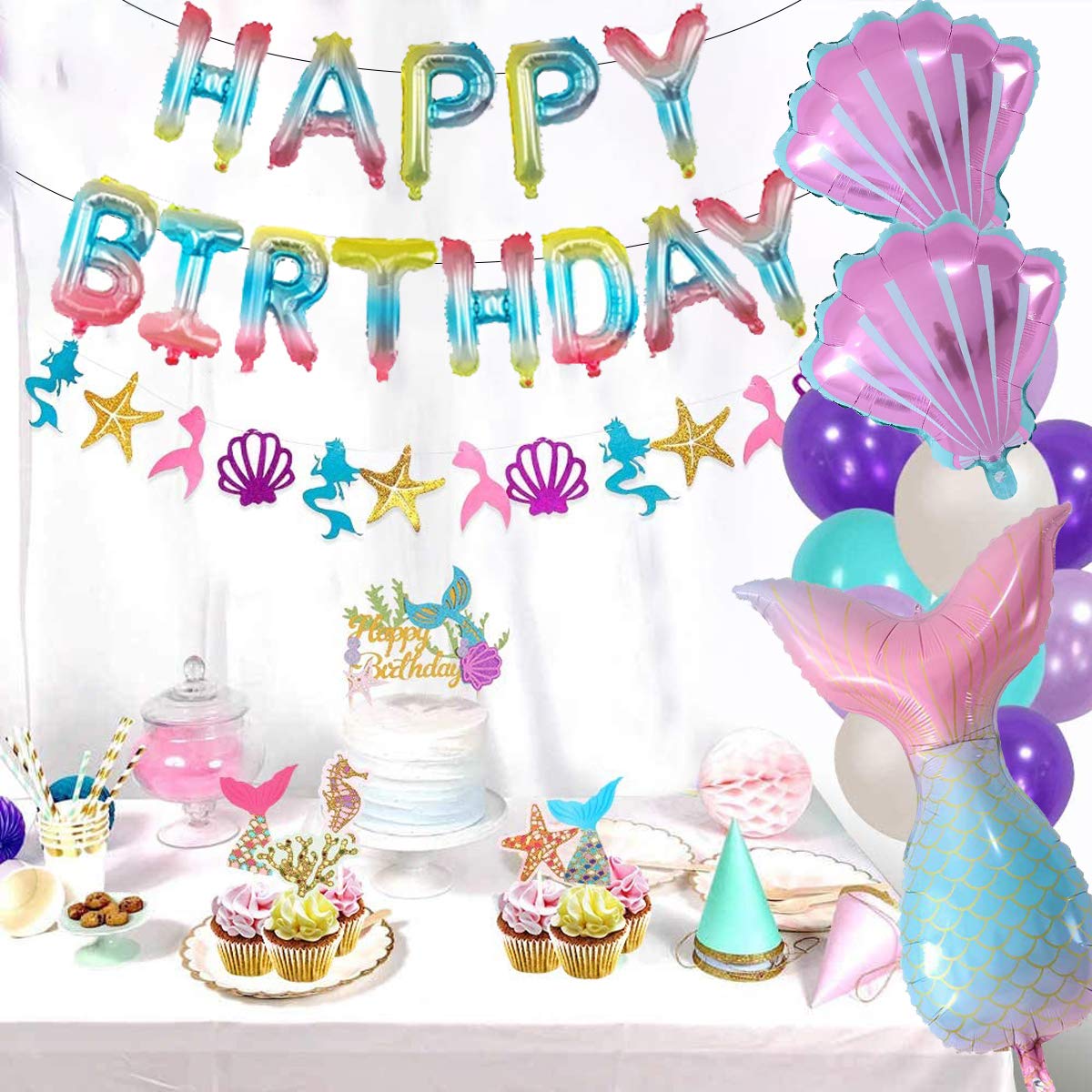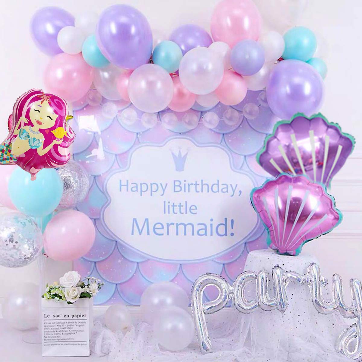 Vamei Meerjungfrau Geburtstagsdeko Set - Mit Ballons, Banner & Tischdecke Für Mädchen
