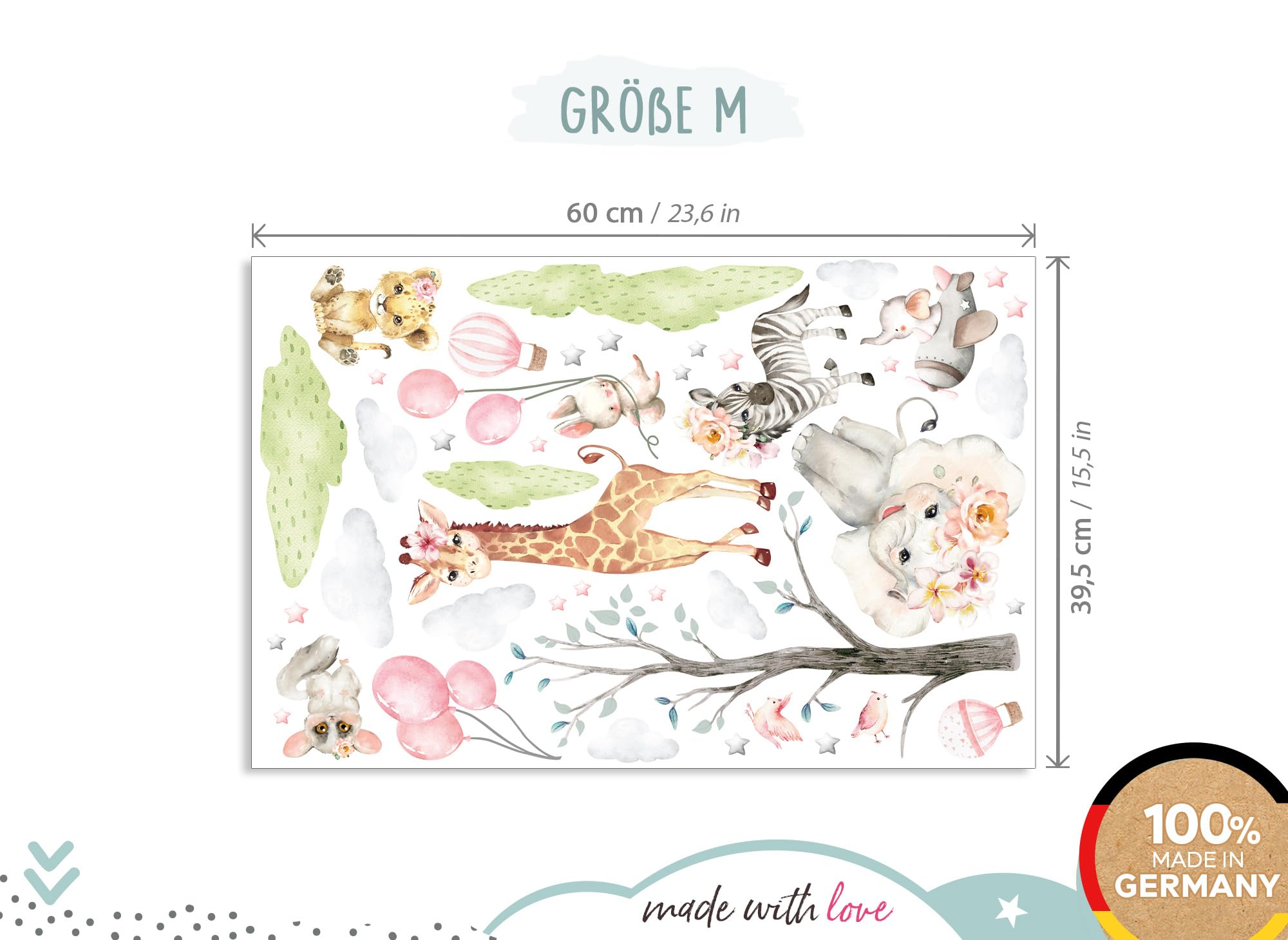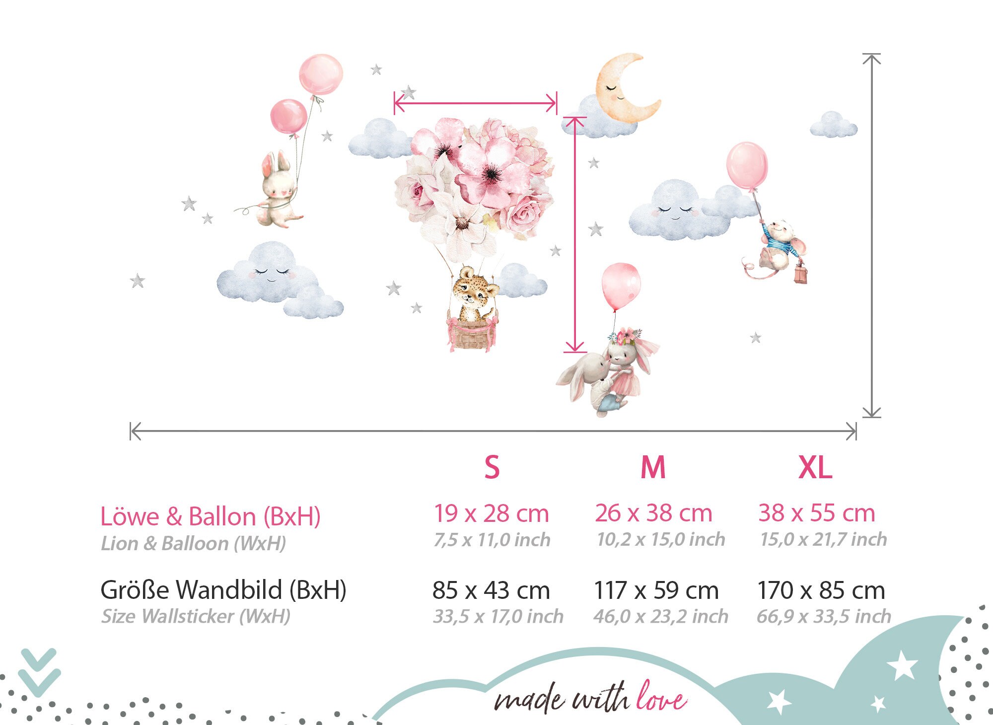 Wandaufkleber Kinderzimmer - Tiere Ballons Sterne Wolken