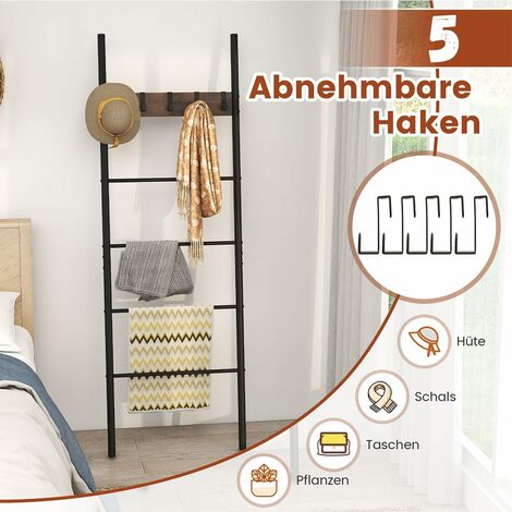 LIFEZEAL Handtuchleiter Bambus | 5 Ebenen Mit 4 Haken - Platzsparendes Regal 148cm