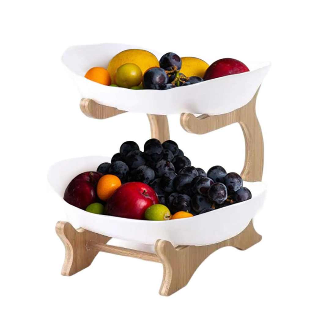 Xnqelerate Obstkorb 2-etagig - Keramik & Bambus Design Für Küche