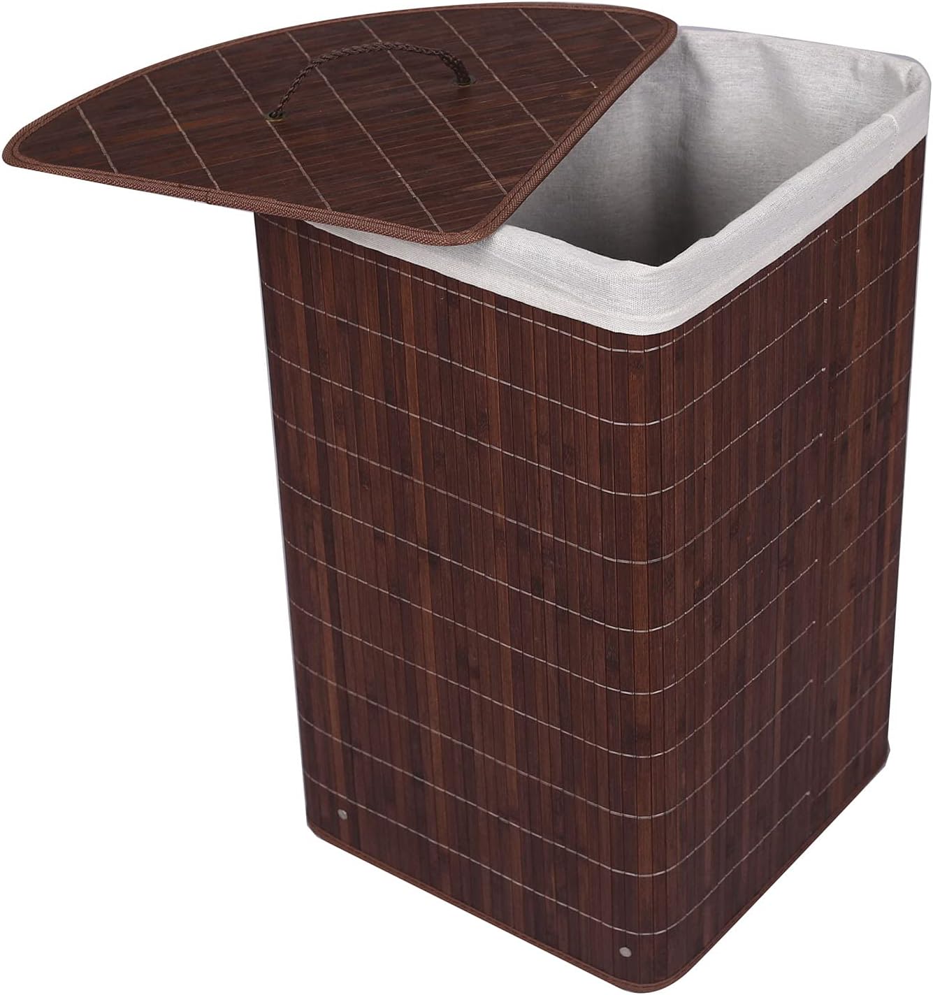 NUXIO Bambus Wäschekorb 80L - Mit Deckel & Herausnehmbarem Sack | Schwarz