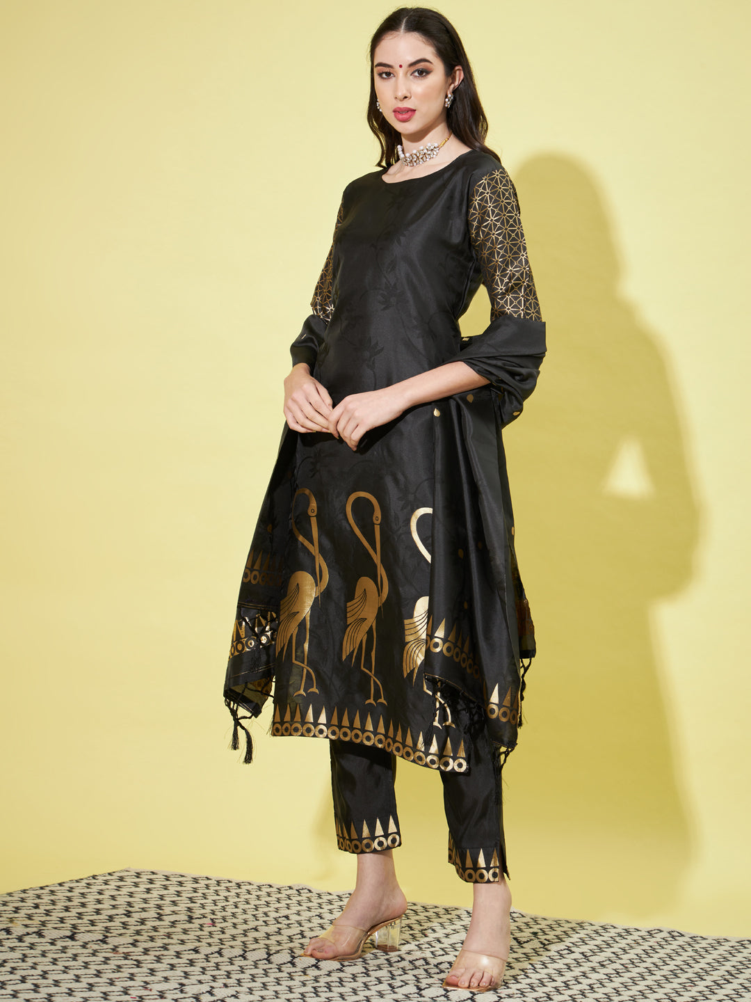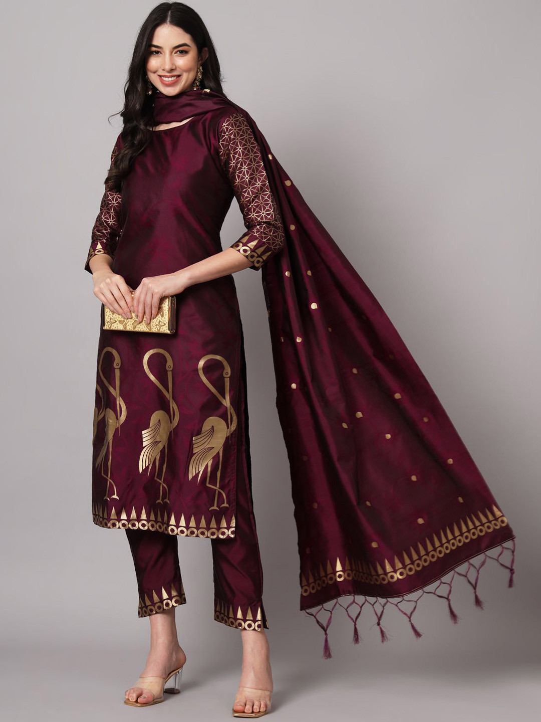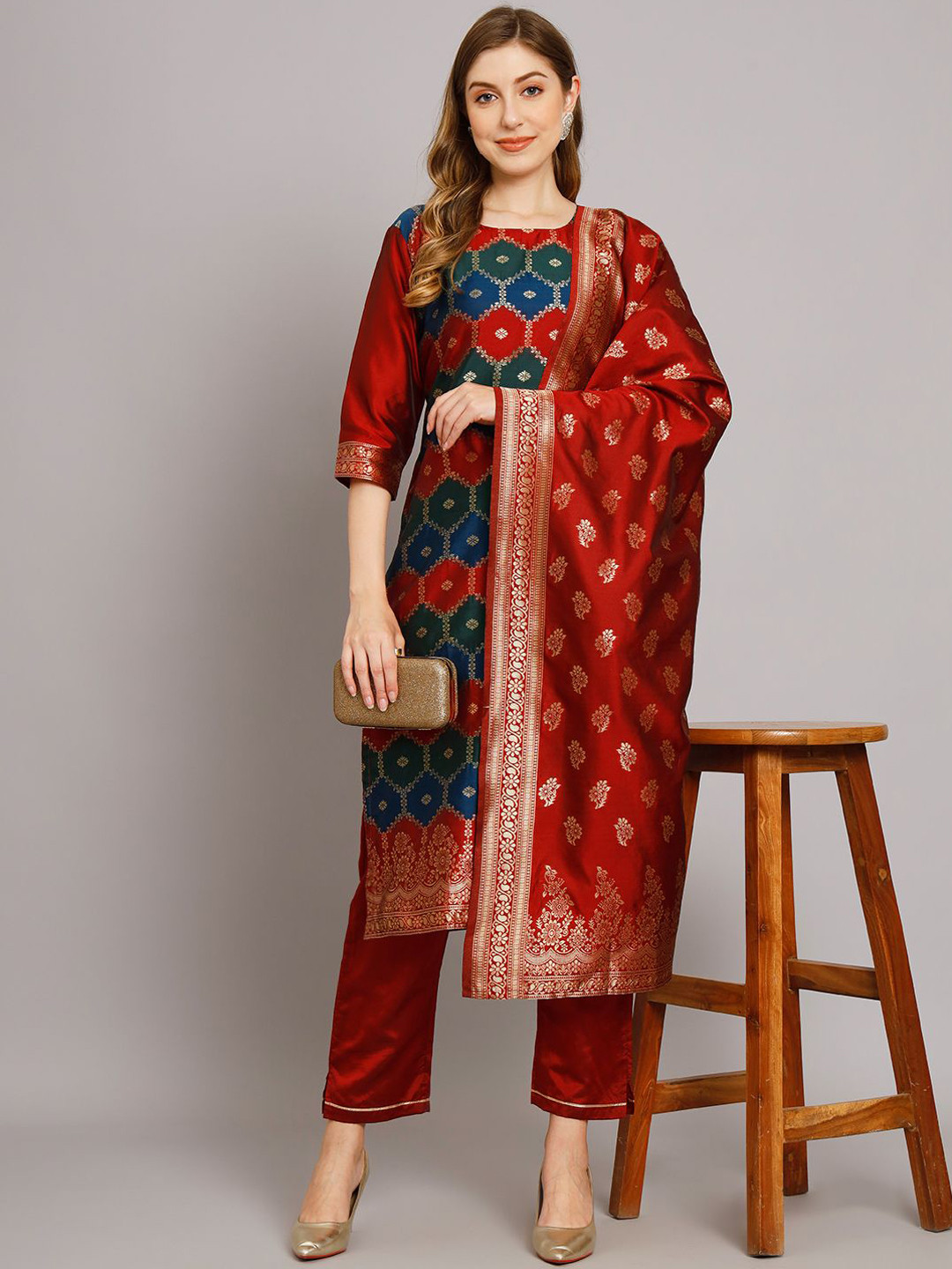 VredeVogel Banarasi Damen Kurta Set - Seide Jacquard Mit Hose & Dupatta