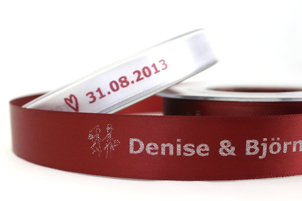 Suchst du etwas ganz Besonderes für deine Geschenke oder Veranstaltungen? Mit diesem personalisierten Band kannst du deinem Style freien Lauf lassen! Das 90 Meter lange Band aus hochwertigem Polyester gibt's in verschiedenen Breiten von 10mm bis 50mm - da ist für jeden Zweck das Richtige dabei. Du kannst dein Logo, Namen oder jeden beliebigen Text darauf drucken lassen. Ob für Hochzeitsdekoration, Geschenkverpackungen, Haarschmuck oder Werbeaktionen - dieses Band macht einfach alles viel persönlicher und eleganter. Die satinierte Oberfläche sieht richtig edel aus und die Farbauswahl ist riesig. Stell dir vor, wie toll deine Geschenke aussehen, wenn sie mit einem individuellen Band verpackt sind! Oder wie schön eine Hochzeit wird, wenn alles mit personalisierten Bändern dekoriert ist. Einfach dein Design einschicken und schon hast du ein Unikat, das es so kein zweites Mal gibt. Perfekt für alle, die ihre Events und Geschenke zu etwas Besonderem machen wollen!