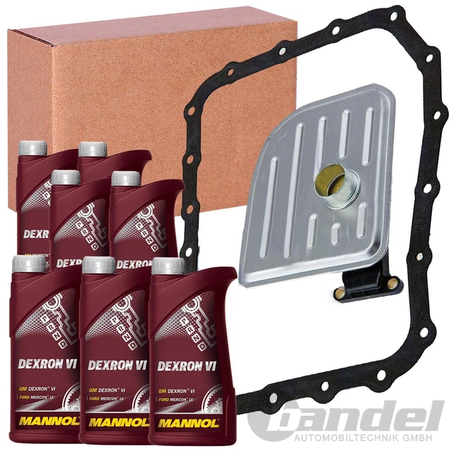 Komplett-Set für dein Automatikgetriebe! Enthält alles für den Ölwechsel: 1x Hydraulikfiltersatz mit Dichtung und 7 Liter Mannol ATF Dexron VI Öl. Perfekt für 6-Gang Automatikgetriebe der Typen A6LF1, A6LF2, A6LF3. Passt zu Kia Sportage III, Sorento, Hyundai Tucson, Santa Fe und vielen weiteren Modellen. Empfohlenes Wechselintervall: 80.000 km oder 5 Jahre. Mit 19 Befestigungsbohrungen für perfekten Sitz. OE-Nummer: 46321-3B000. Wichtiger Hinweis: Bitte vor dem Kauf die Kompatibilität mit deinem Fahrzeug prüfen! Professionelle Installation wird empfohlen. Altöl-Rücknahme möglich gemäß Altölverordnung. Mach dein Getriebe wieder fit und genieße geschmeidige Schaltvorgänge!