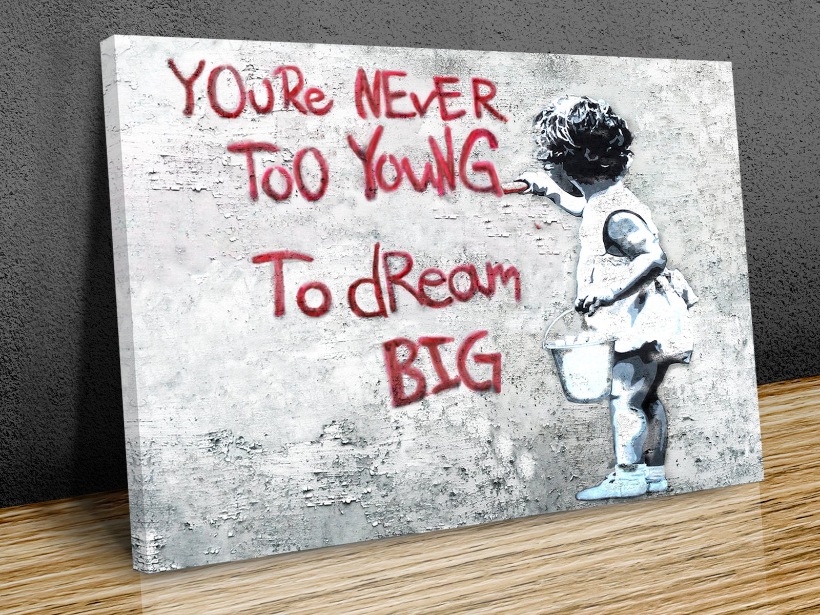Banksy Poster 'Never Too Young To Dream Big' - Leinwand Wandbild 20x30cm