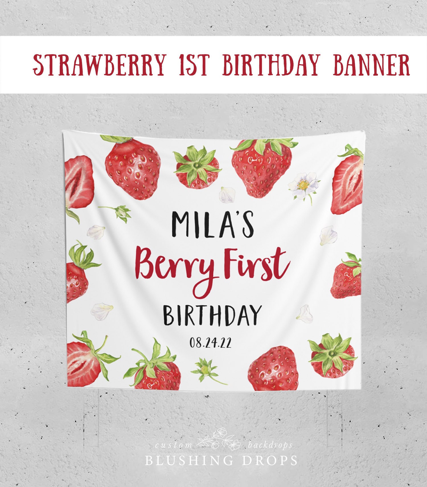 Alles Gute zum Geburtstag mit süßen Erdbeeren! Dieses entzückende Banner in frischen Rot-Grün-Tönen macht jede Geburtstagsfeier zum Highlight. Perfekt für kleine Prinzessinnen, Erdbeer-Fans oder einfach für alle, die es süß und fröhlich mögen. Einfach aufzuhängen und sofort partybereit. Die kindgerechte Gestaltung begeistert Groß und Klein. Ideal für Zuhause, im Garten oder für die Feier im Kindergarten. Mach den besonderen Tag unvergesslich mit dieser bezaubernden Erdbeer-Deko!