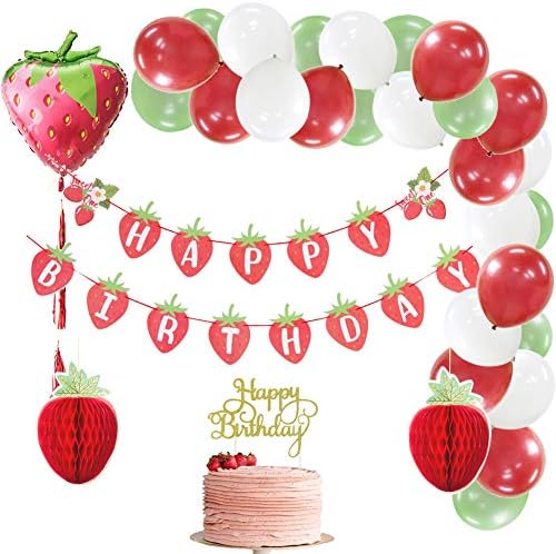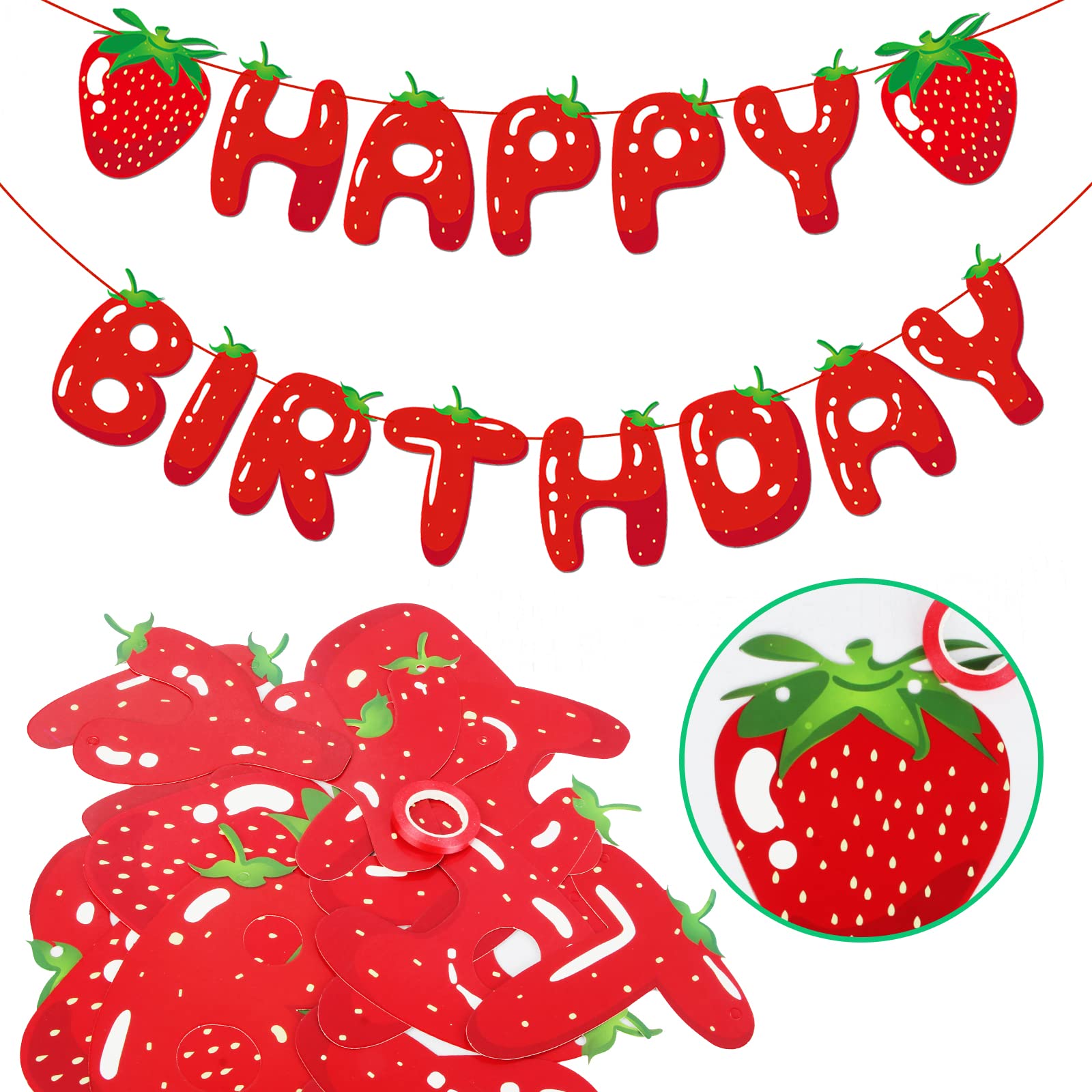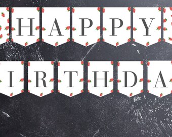 Erdbeer Happy Birthday Banner - Süße Geburtstagsdeko In Rot-Grün