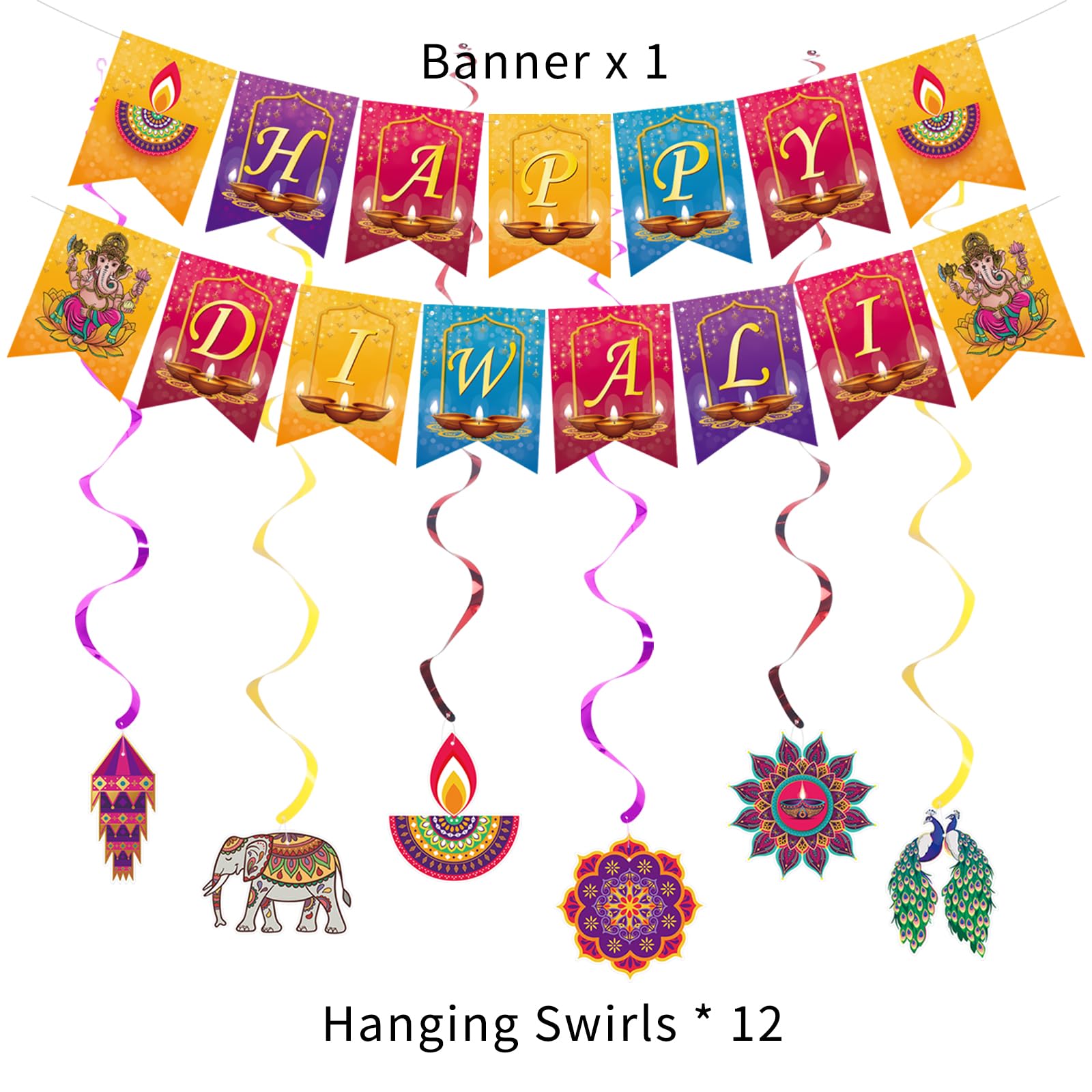 Diwali Party Dekoration Banner - Wiederverwendbares Papierbanner Für Wand & Fenster
