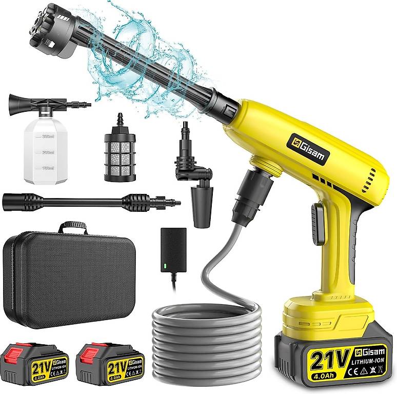 Kabelloser Hochdruckreiniger 60 Bar - Mit 2x 1500mAh Akkus, Schaumsprüher & 6 Düsen
