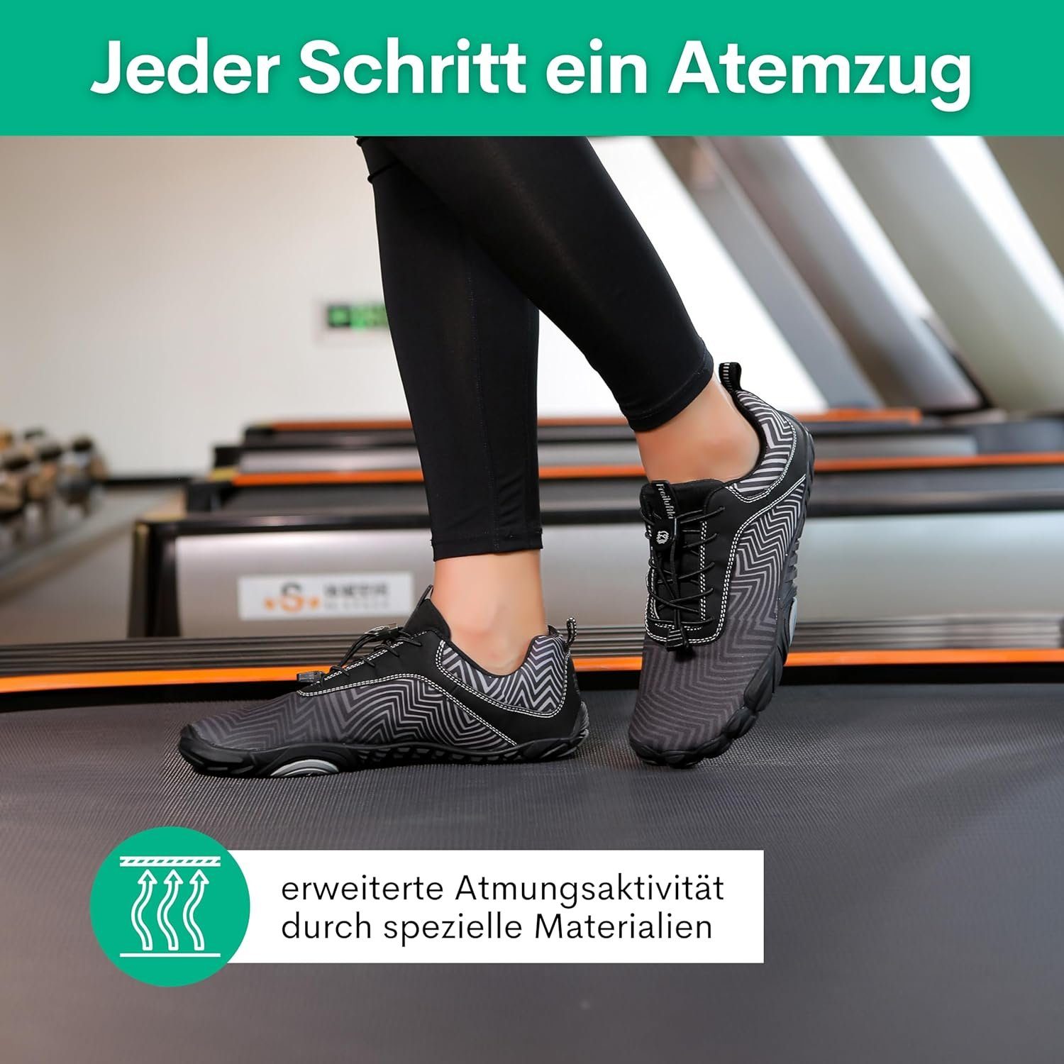 Erlebe das Gefühl von Freiheit für deine Füße! Der Camino von Freiluftkind kombiniert das sportliche Design eines Sneakers mit den Vorteilen eines Barfußschuhs. Die ultra-flexible und dünne Sohle gibt dir maximale Bewegungsfreiheit und ein natürliches Laufgefühl - du spürst den Boden unter deinen Füßen wie nie zuvor! Die innovative Webstruktur ist super atmungsaktiv und hält deine Füße auch bei intensiven Aktivitäten angenehm kühl und trocken. Das geniale Feature: Die patentierte Anziehhilfe an der Ferse macht das Anziehen zum Kinderspiel. Perfekt für den Alltag, Sport oder einfach nur zum Herumlaufen. Die ergonomische Form entlastet Füße, Gelenke und Rücken und unterstützt eine gesunde Körperhaltung. In Unisex-Größen von 35-49 und im stylischen Weiß/Grau-Design passt der Camino zu jedem Outfit. Gib deinen Füßen die Freiheit, die sie verdienen!