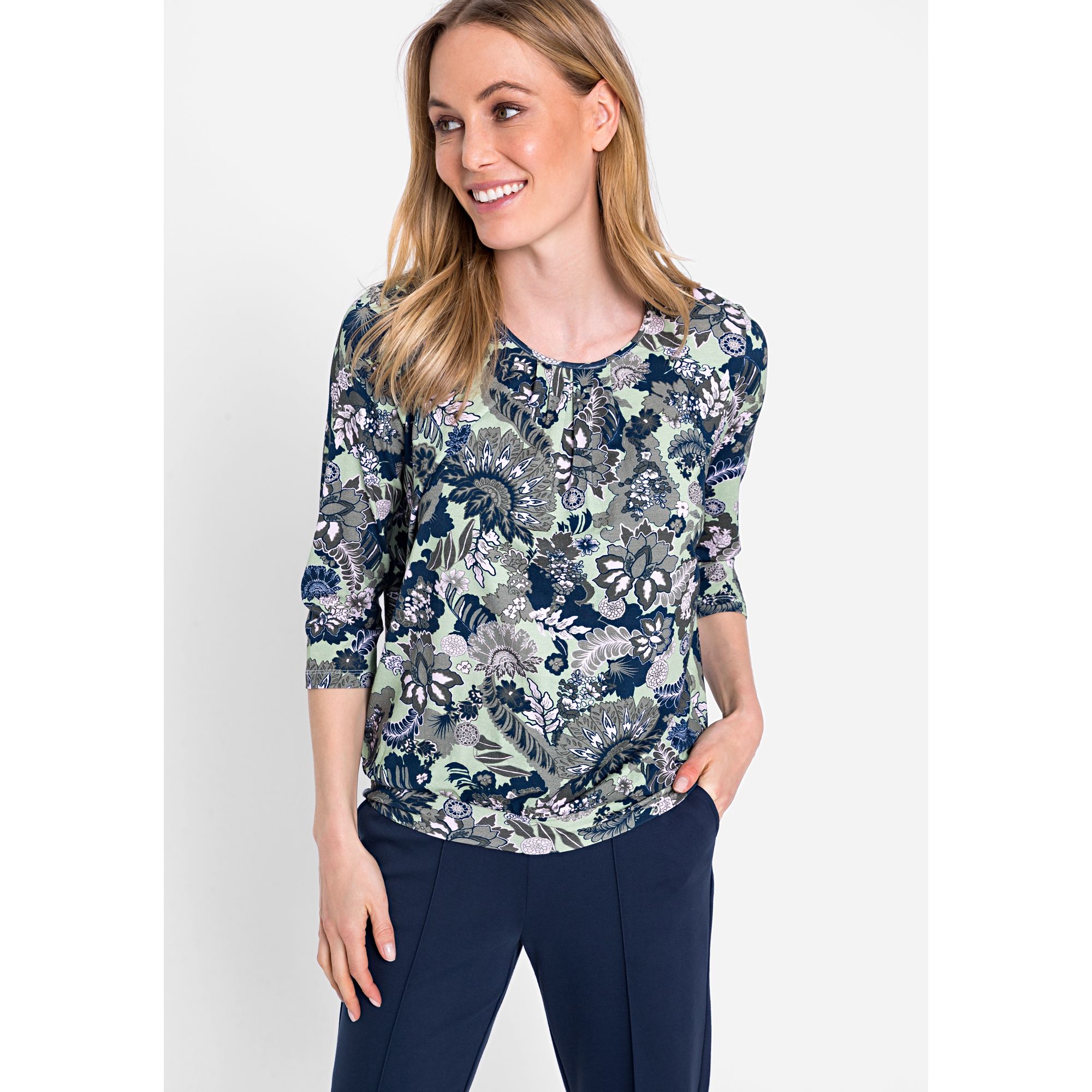 Damen T-Shirt 3/4 Arm Basic - Slim Fit Oberteil Aus Weichem Baumwollmix