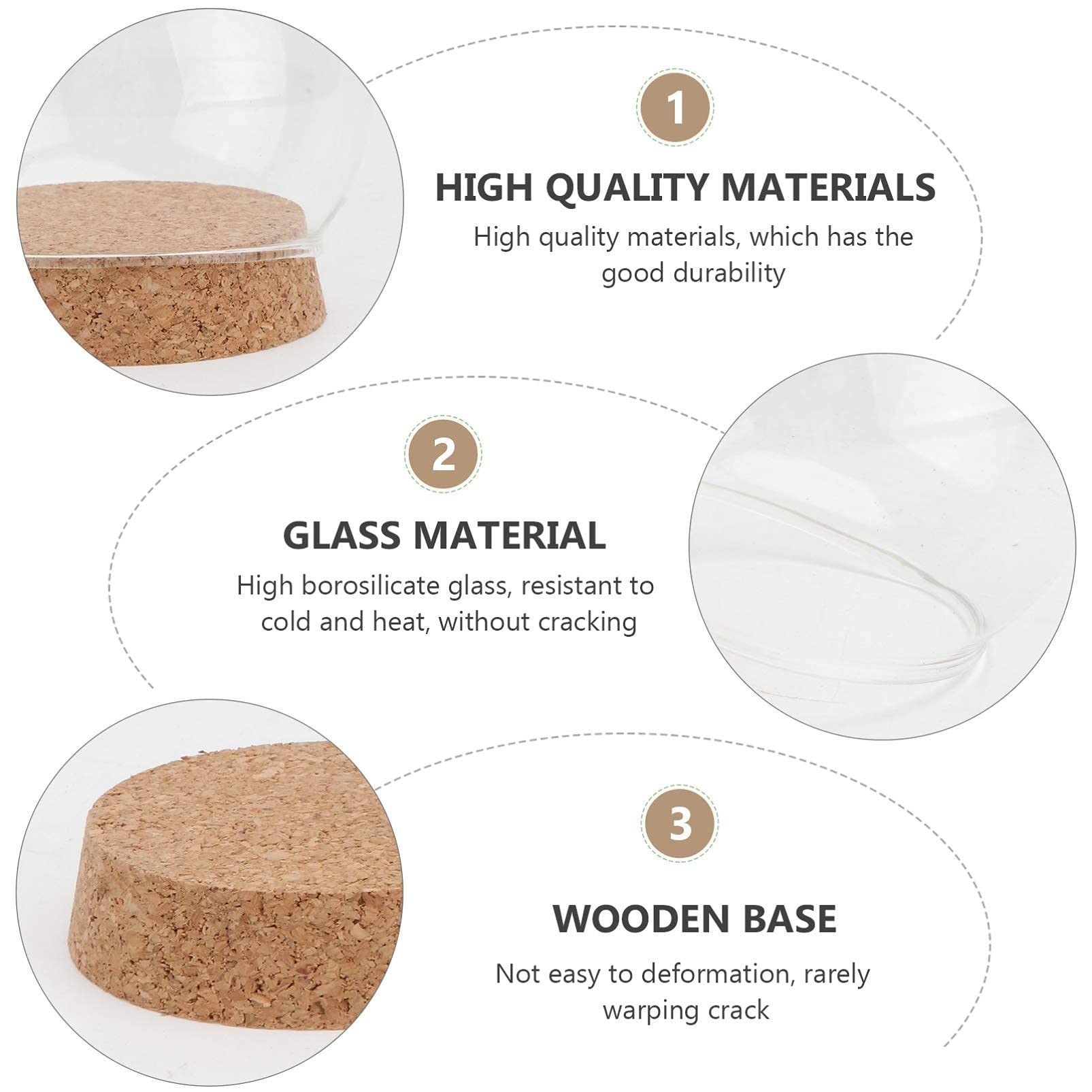 Verwandle deine Lieblingsstücke in kleine Kunstwerke! Diese elegante Glas-Kuppel mit LED-beleuchtetem Holzsockel ist perfekt, um besondere Erinnerungsstücke, Figuren, Blumen oder Kristalle stilvoll in Szene zu setzen. Mit 12cm Durchmesser und Höhe bietet sie genug Platz für deine Schätze. Der Holzsockel mit integriertem Licht und Schalter sorgt für eine magische Beleuchtung - einfach 3 AAA-Batterien einlegen und staunen! Die klare Glasglocke schützt vor Staub und lässt deine Ausstellungsstücke perfekt zur Geltung kommen. Ob im Wohnzimmer, Schlafzimmer, Büro oder als besonderes Deko-Element - diese Kuppel macht überall eine gute Figur. Perfekt für getrocknete Blumen, kleine Figuren, besondere Steine oder als romantische Geschenkverpackung. Einfach befüllen, Licht anmachen und sich an der bezaubernden Wirkung erfreuen!