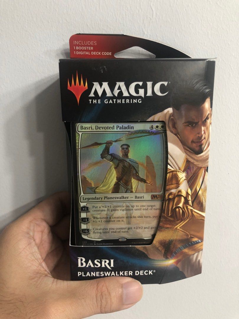 Perfekt für Magic-Einsteiger! Dieses Basri Ket Planeswalker Deck ist sofort spielbereit und enthält alles, was du brauchst: 60 Karten, einen Booster mit 15 zusätzlichen Karten (inklusive einer seltenen oder mythischen Karte), eine Deck-Box, ein Strategieblatt und einen Code für Magic: The Gathering Arena. Basri Ket ist ein Paladin, der mit +1/+1 Markern arbeitet - damit machst du deine Kreaturen immer stärker! Viele Verbündete können fliegen und umgehen so gegnerische Kreaturen. Mit Lebensbindung bleibst du länger im Spiel und baust deine Lebenspunkte aus. Einfach Deck öffnen, ein paar Spiele zum Üben spielen und dann mit dem Booster dein Deck verbessern. Ob online mit dem Arena-Code oder offline mit Freunden - dieses Deck macht sofort Spaß! Die Basis Edition 2021 vereint klassische Magic-Karten mit neuen Highlights. Schnell bestellen und in die Welt von Magic eintauchen!