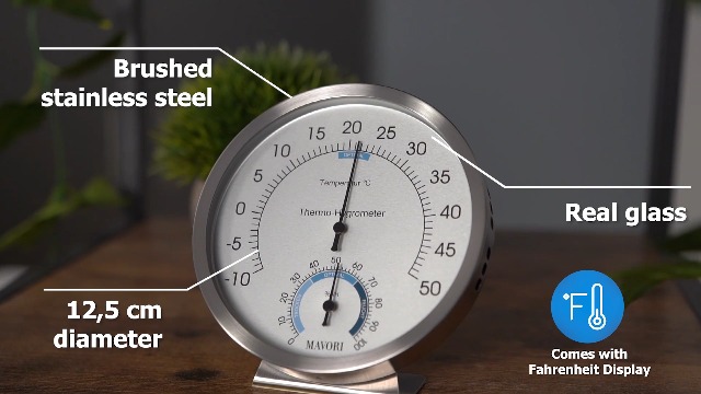 MAVORI Analoges Raumthermometer - Batteriefrei, Edelstahl, 9,5 Cm Für Perfektes Raumklima