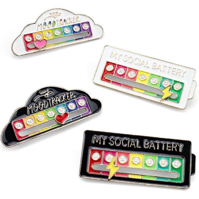Du bist introvertiert und hasst es, ständig deine Stimmung erklären zu müssen? Diese Social Battery Pins sind die perfekte Lösung! Im Set sind 4 verschiedene Pins mit Schieberegler - zeig einfach an, wie voll dein 'sozialer Akku' gerade ist. Von glücklich bis total leer, alles ist dabei. Aus hochwertiger Legierung mit glatter Emaille-Oberfläche - kratzt nicht und verblasst nicht. Perfekt für Kleidung, Rucksack oder Hut. Das schlichte Design in Schwarz-Weiß passt zu jedem Outfit. Super praktisch für Schule, Arbeit oder Parties - ohne Worte verstehen alle, ob du gerade Lust auf Gespräche hast oder deine Ruhe brauchst. Auch ein mega Geschenk für introvertierte Freunde! Zeig deine Stimmung, ohne ein Wort sagen zu müssen - einfach, witzig und verdammt praktisch. Mach dein Leben einfacher und deine Stimmung für alle sichtbar!