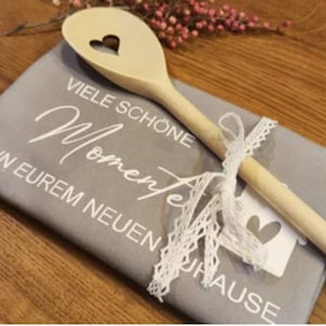 Vlecexs Einzugsgeschenk Set - Baumwoll Geschirrtuch & Holz Kochlöffel Mit Geschenkband | Wohnungsgeschenk Neueinrichtung