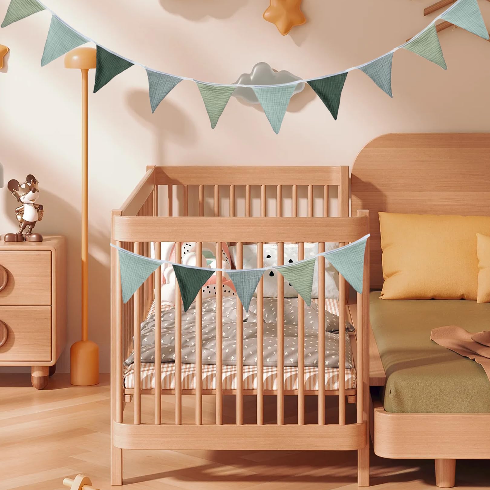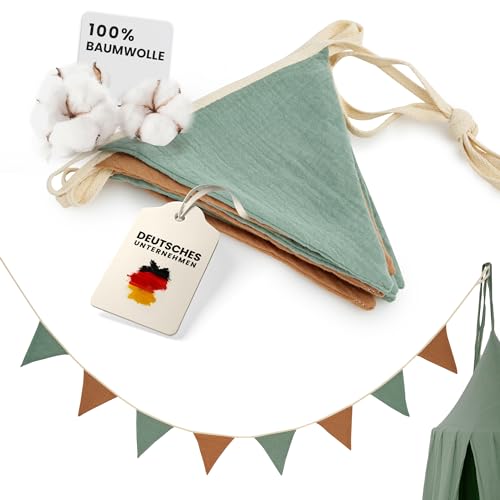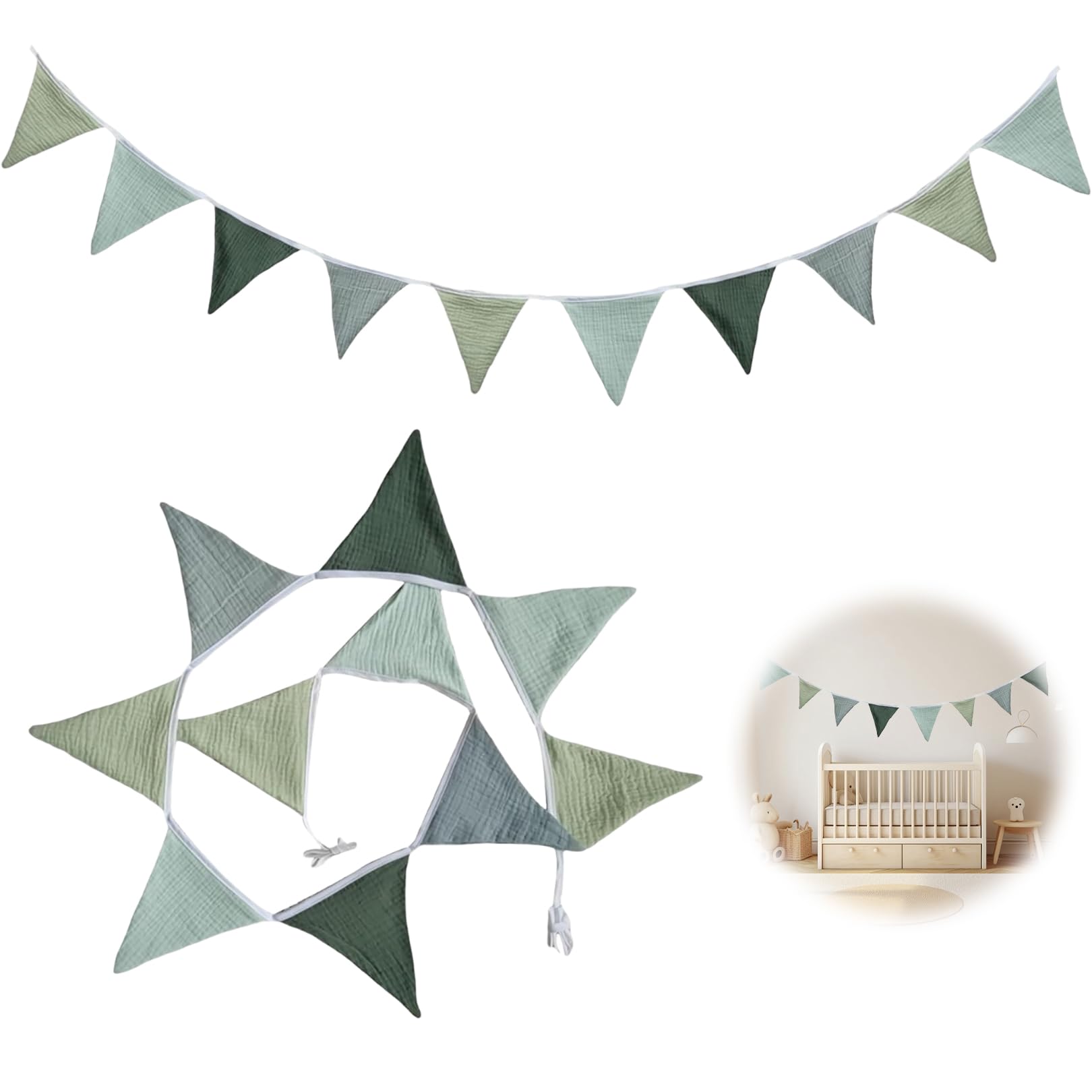 Wimpelkette Kinderzimmer - Baumwoll Girlande In Hellgrün Für Geburtstag & Deko