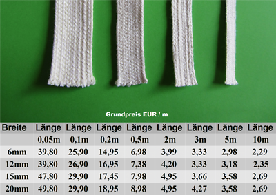 Flammschalendocht 10mm Baumwolle - 1m Outdoor-Docht Made In Germany