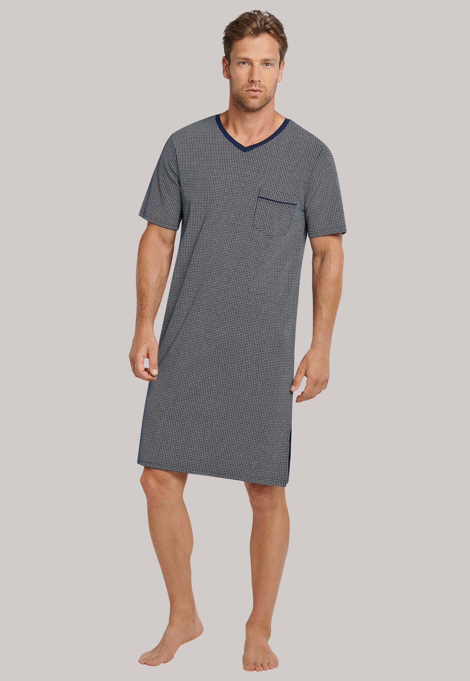 Dieser Herren-Kaftan ist super bequeme Nachtwäsche für warme Tage! Aus 65% Baumwolle und 35% Leinen gefertigt - weich, atmungsaktiv und schweißabsorbierend. Mit V-Ausschnitt und kurzen Ärmeln, perfekt für den Sommer. Die praktische Kängurutasche bietet Platz für Handy oder Geldbörse. Durch den Seitenschlitz hast du maximale Bewegungsfreiheit. Kann nicht nur als Nachthemd getragen werden, sondern auch als lässiger Bademantel, für den Strand oder zu Hause. Erhältlich in Schwarz, Weiß, Lila Grau und Blau in den Größen M bis 3XL. Einfach in der Maschine waschbar (Kaltwasser). Ein vielseitiges Kleidungsstück das sich perfekt als Geschenk für Familie oder Freunde eignet. Sieht auch mit einer Halskette toll aus!