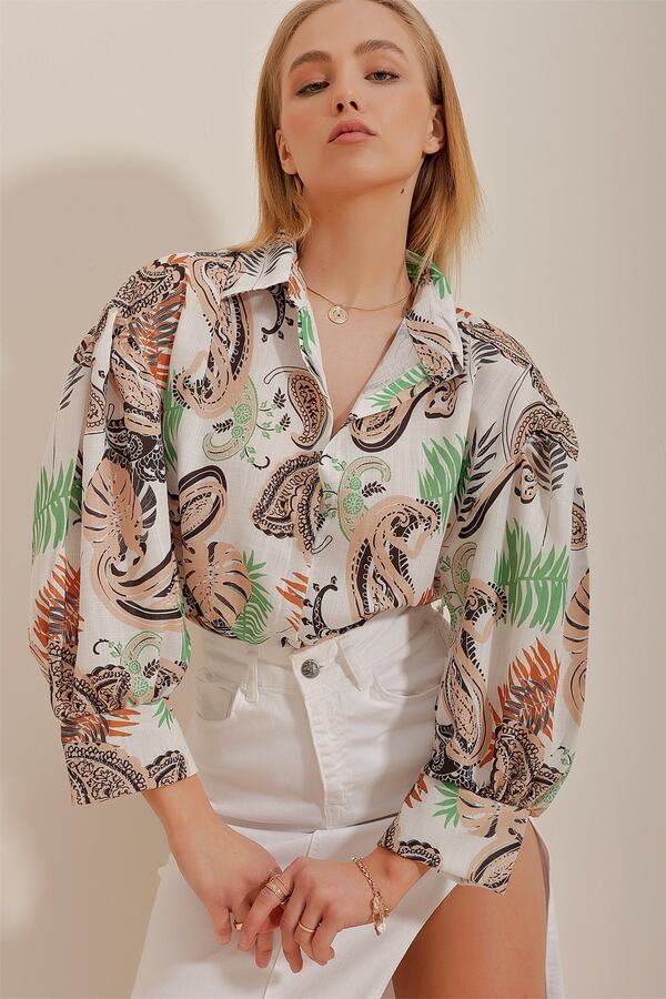 Damenhemd Baumwolle-Leinen - V-Ausschnitt Mit Roll-Up-Ärmel