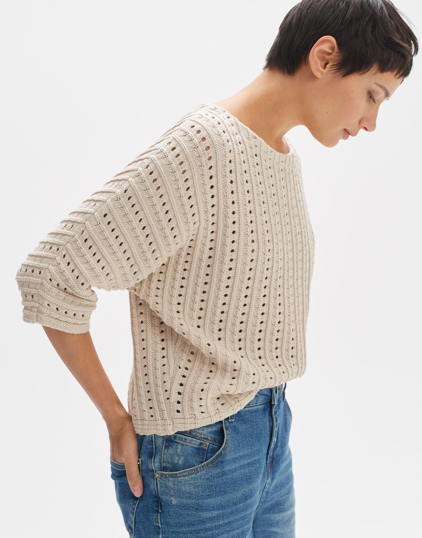 OPUS Damen Pullover Aus Baumwolle - Nachhaltiger Pointelle Strickpullover