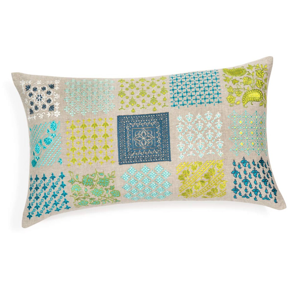 Die Matte ist traditionell in Indien handgewebt, was man an den kleinen Unregelmäßigkeiten erkennt. Das macht sie aber erst authentisch und einzigartig. Die kräftigen Türkis- und Aquablau-Töne sehen einfach wunderschön aus.