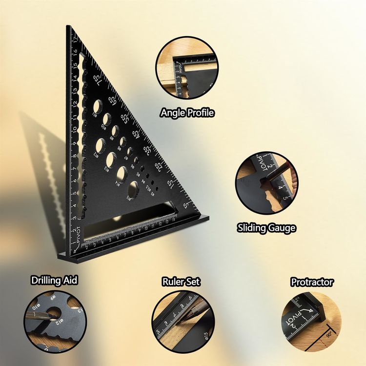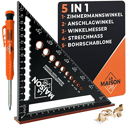 Ob Heimwerker oder Profi – der ZENO Zimmermannswinkel ist dein vielseitiger Helfer! Aus robustem Stahl mit lasergeätzten, verschleißfesten Markierungen für präzise 90°-Messungen. Mit 180 mm Länge, inkl. Lineal, Winkelmesser, Parallelanreißer und Bohrschablone. Kompakt und leicht für Werkzeugkasten oder Baustelle. Ideal für Rahmen, Dächer, Treppen und Holzarbeiten. Mit diesem All-in-One-Werkzeug machst du keine Messfehler mehr. Einfach handhaben, langlebig und genau – für perfekte Ergebnisse in jedem Projekt!