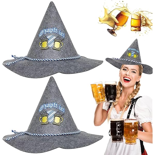 O'zapft is! Mit diesen 2 originalen Bayerischen Filzhüten seid ihr perfekt fürs Oktoberfest gerüstet! Aus weichem Filzmaterial - bequem den ganzen Tag zu tragen! Mit klassischer Blau-Weißer Kordel und süßen Bier-Motiven - einfach urig! Größe: 38,5x22cm - passt auf die meisten Köpfe! Perfekt für Oktoberfest, Bierfeste, Karneval oder Mottopartys! Für Männer und Frauen geeignet - einfach mit Tracht oder Lederhose kombinieren! Im 2er-Set - ideal für Paare oder um mit Freunden zu feiern! Einfache Pflege - Flecken einfach mit feuchtem Tuch abwischen! Macht sofort bayerische Stimmung! Ob in München oder daheim - mit diesen Hüten seid ihr die Stars des Festes! Einfach aufsetzen und Prost sagen!