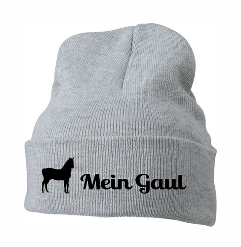 MoonWorks Damen Beanie Mit Pferd-Motiv - Kuschelige Strickmütze Für Reiterinnen Und Pferdefans