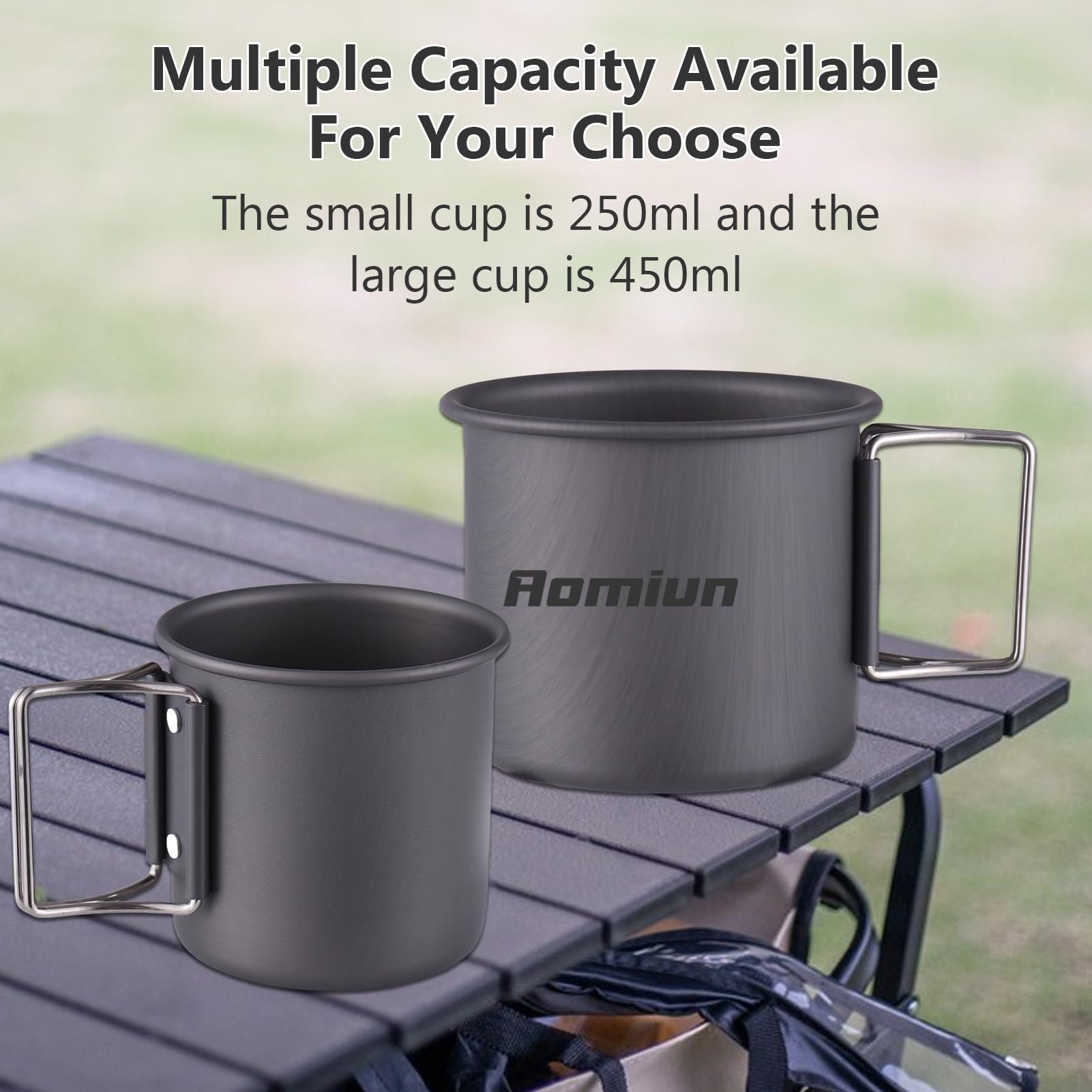 Aomiun Camping Becher Set 2-teilig - 450ml & 250ml - Faltbarer Griff - Leichtes Aluminium